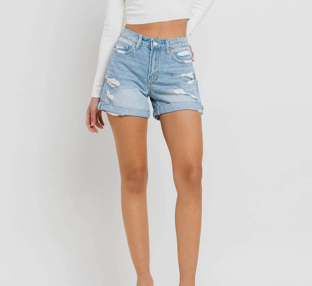Mid Rise Double Cuffed Boyfriend Shorts
